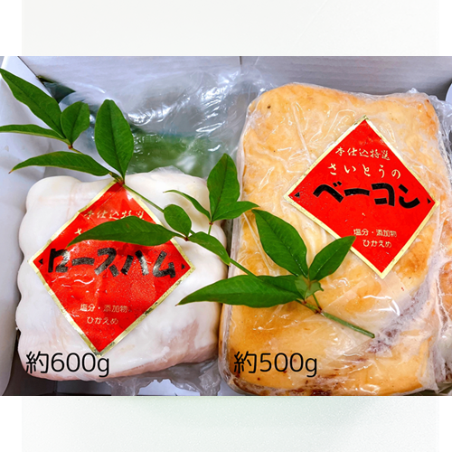 手造りロースハム×600g、手造りベーコンセット×500g